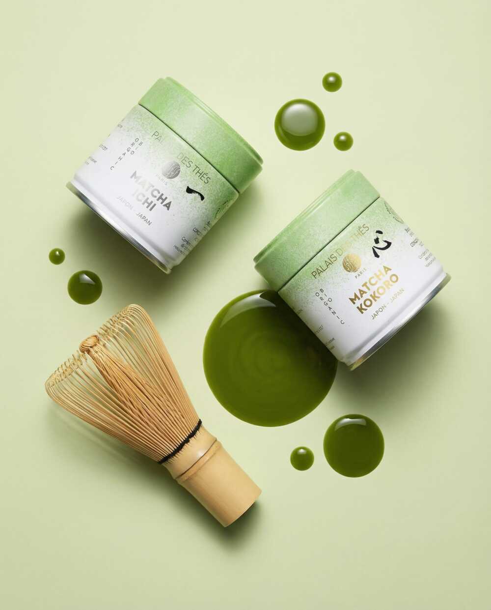 Préparer le matcha fait partie intégrante de ses bienfaits. Une poudre tamisée, une eau à 70 degrés et un fouet en bambou suffisent. Le geste en « W » permet d’obtenir une texture lisse et mousseuse. En latte, l’ajout de lait apporte rondeur et gourmandise. La version glacée a aussi ses amateurs qui recherchent la fraîcheur. Chaque préparation devient un moment de pleine attention et de voyage. Boîte de 30g : 35€. palaisdesthes.com