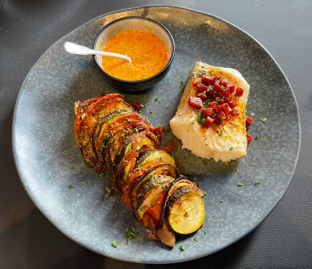 En cuisine, le chef Jiggzki fait parler les produits frais avec une partition tout en justesse. La salade de crevettes, avocat et pamplemousse huile de vanille et mangue éveille les papilles sans jamais les brusquer (13€). Le pavé de cabillaud sauce chorizo, aubergine, courgette, fenouil, poivron rouge, oignon impose sa gourmandise et marque les esprit (23€). Et pour finir sur une note réconfortante, les becs sucrés succombent à la crème au chocolat maison, simple et terriblement efficace.(11€).