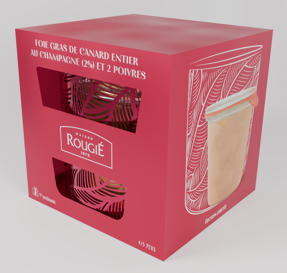 Créateur d’expériences culinaires, à l’affût des tendances, Rougié sort le grand jeu pour les fêtes de fin d’année afin de célébrer ses 150 ans d’excellence et de passion gastronomique. La marque signe ici une édition limitée qui incarne tout le raffinement de son savoir-faire. Ce coffret inédit, pensé comme une ode au plaisir des sens, réunit l’authenticité, la délicatesse et la gourmandise. En son cœur repose un Foie Gras de Canard entier au Champagne et aux deux poivres, recette emblématique de la maison.